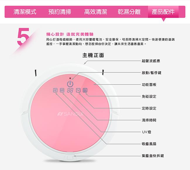 SANSUI山水UV殺菌燈智慧掃地機器人附虛擬牆SW-Q6